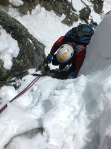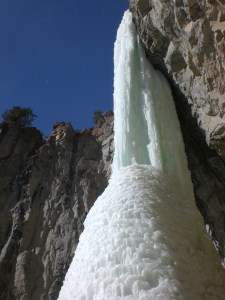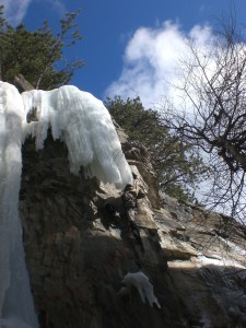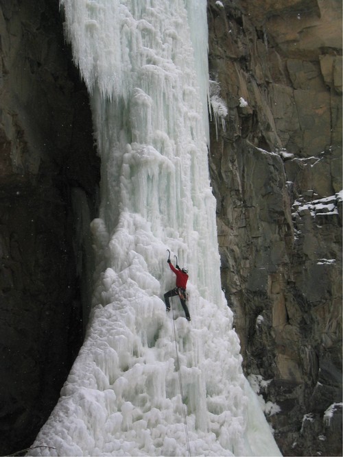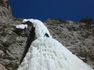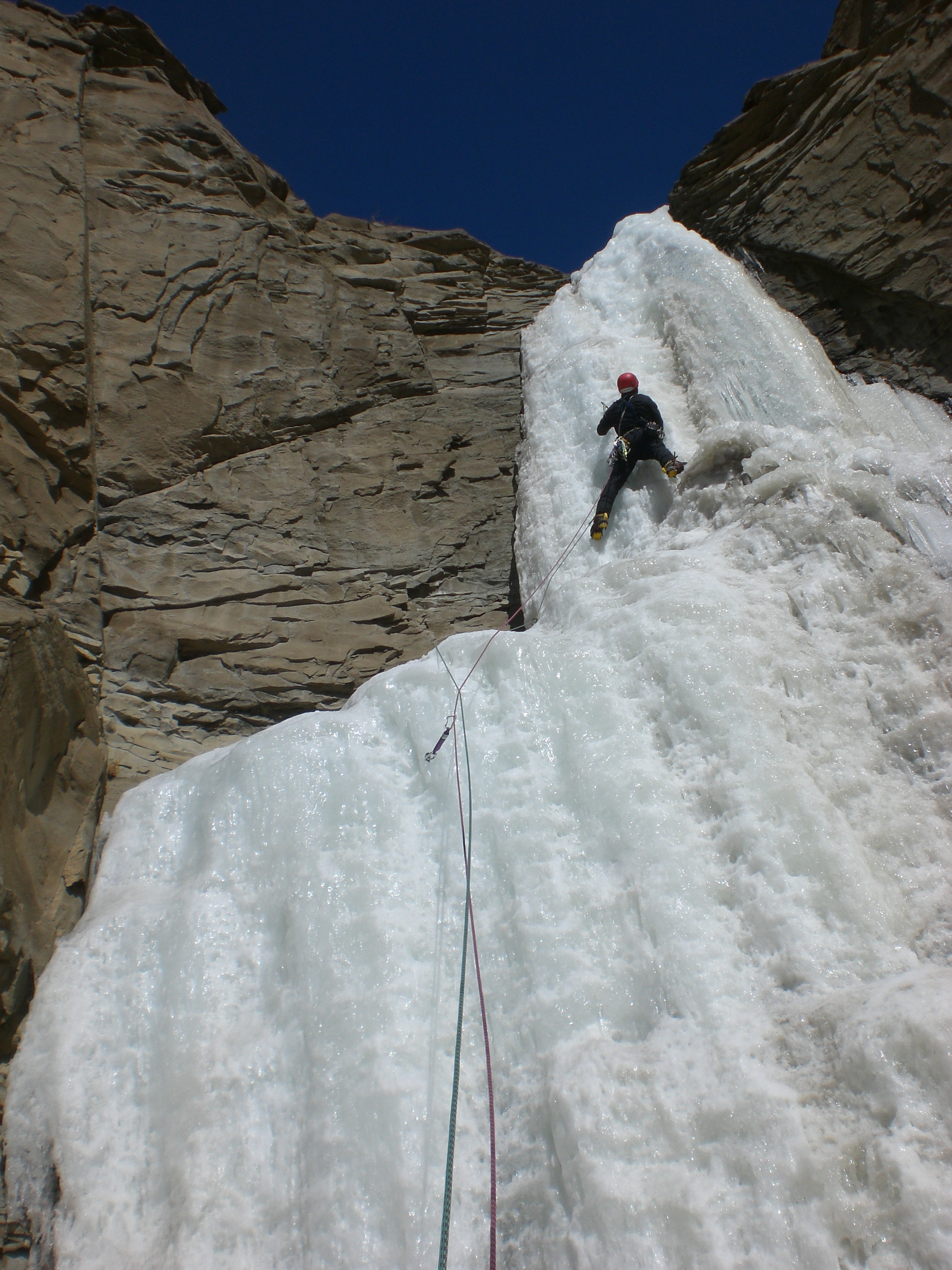 Pitch 5 is a WI 5 pillar, with the WI 6/M7 pitch Carotid Artery just to the left.