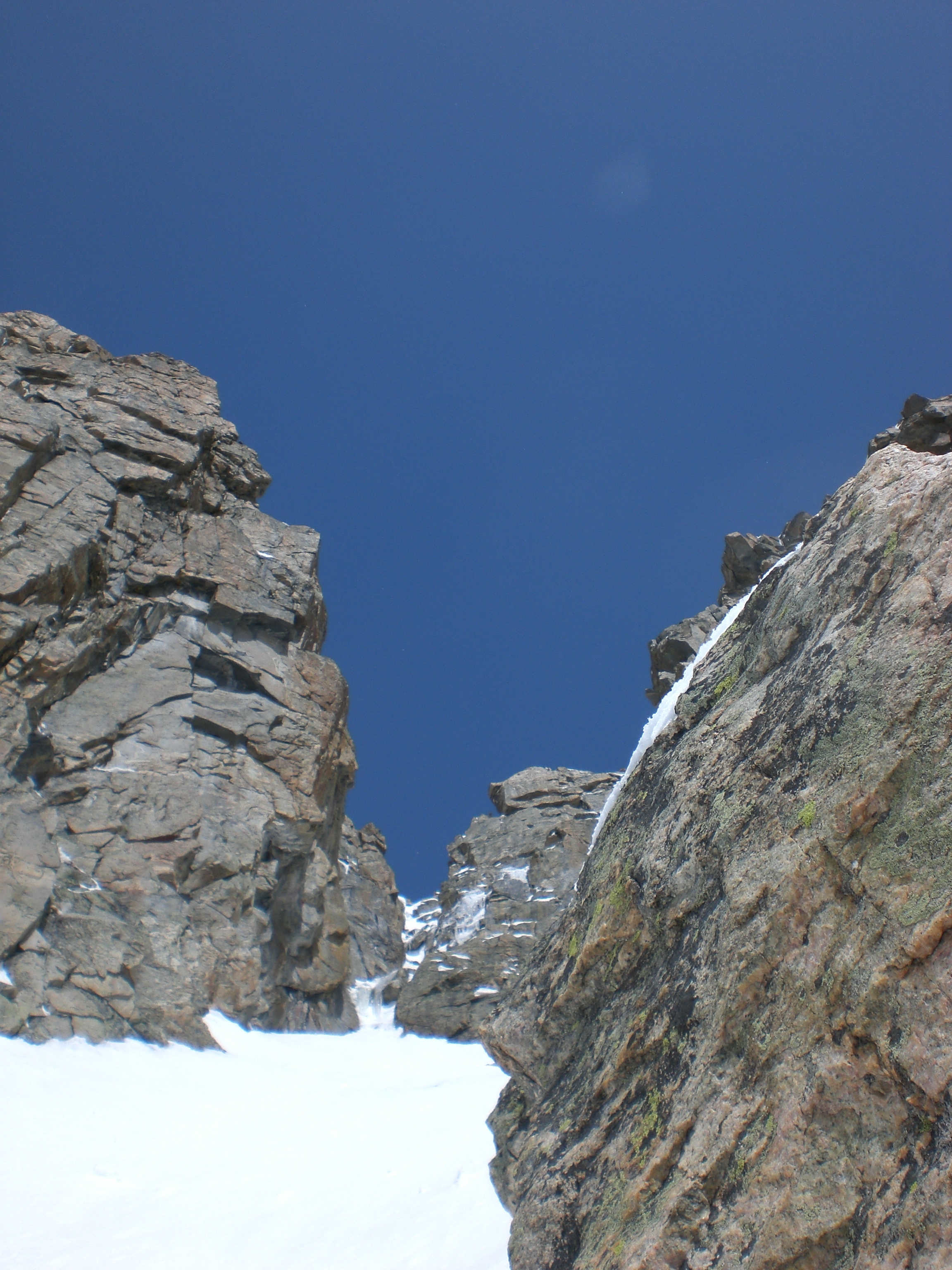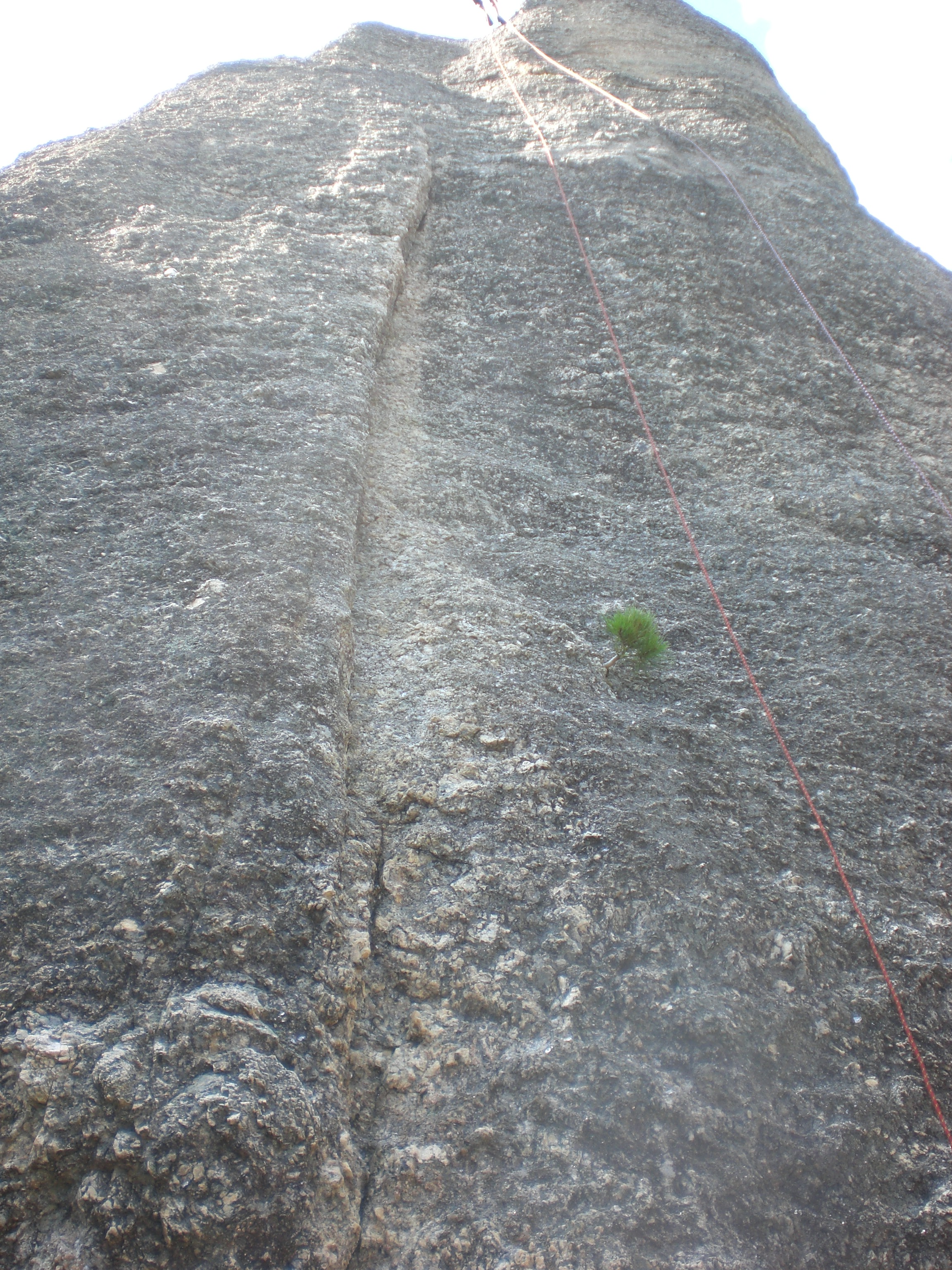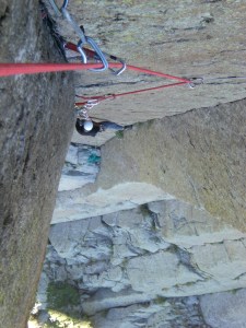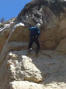The key to the whole trip up this climb is the third pitch. It gets sun in the morning and the top will disappear in warm, consistently sunny weather. It is visible from the road, if you drive a couple hundred yards past the parking spot for the approach.