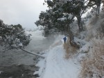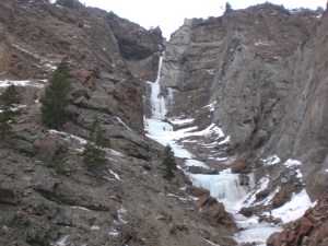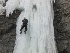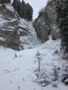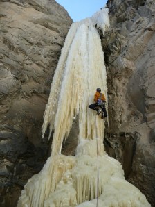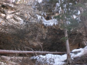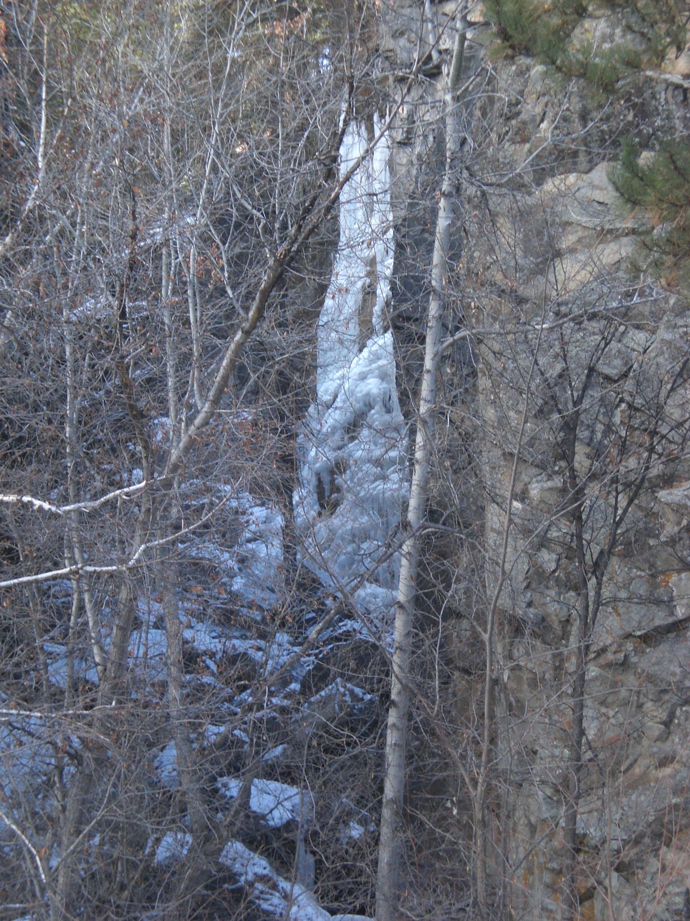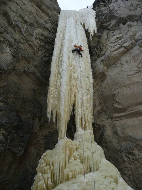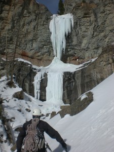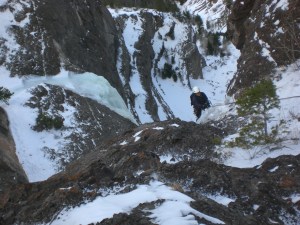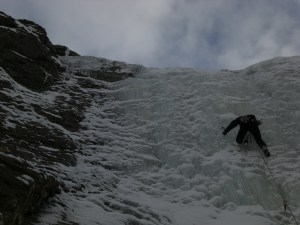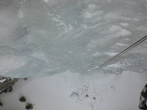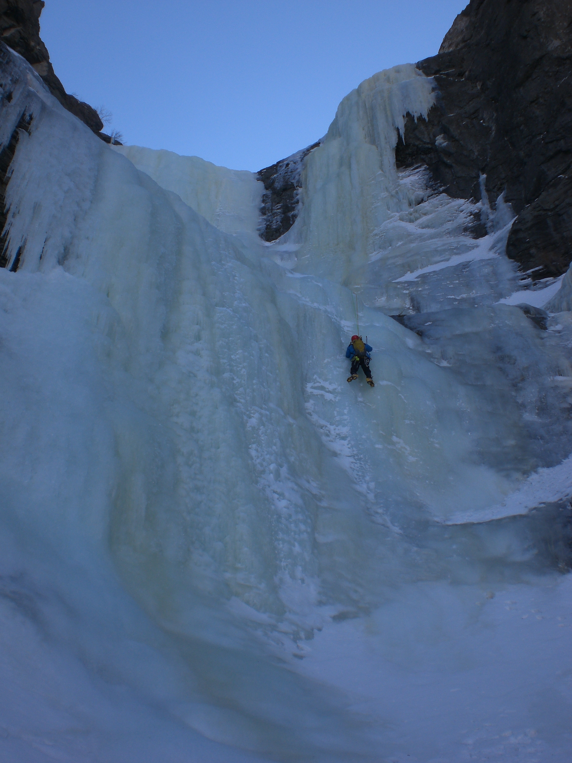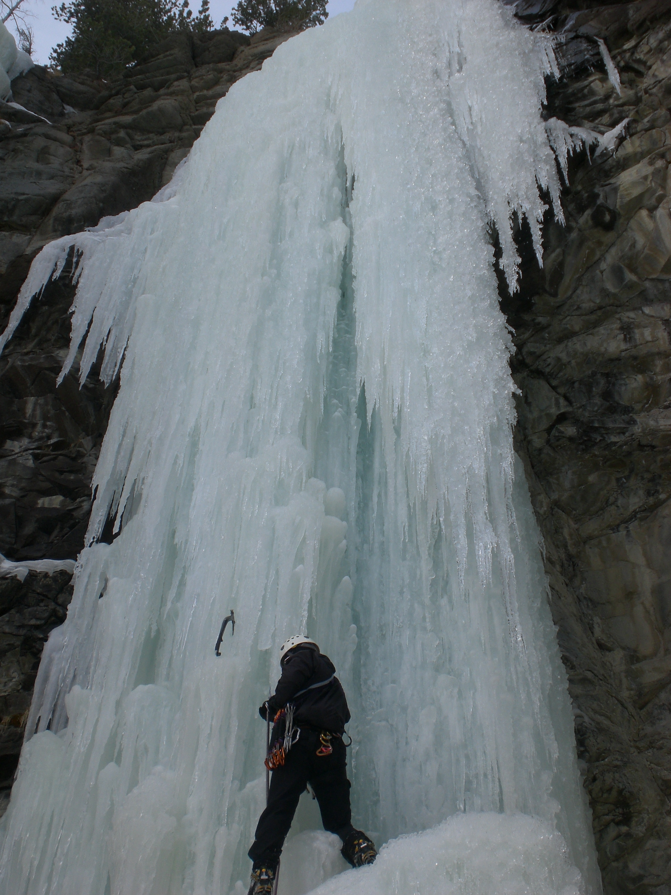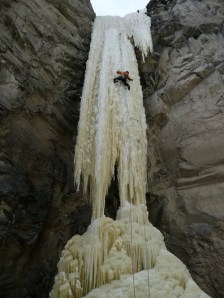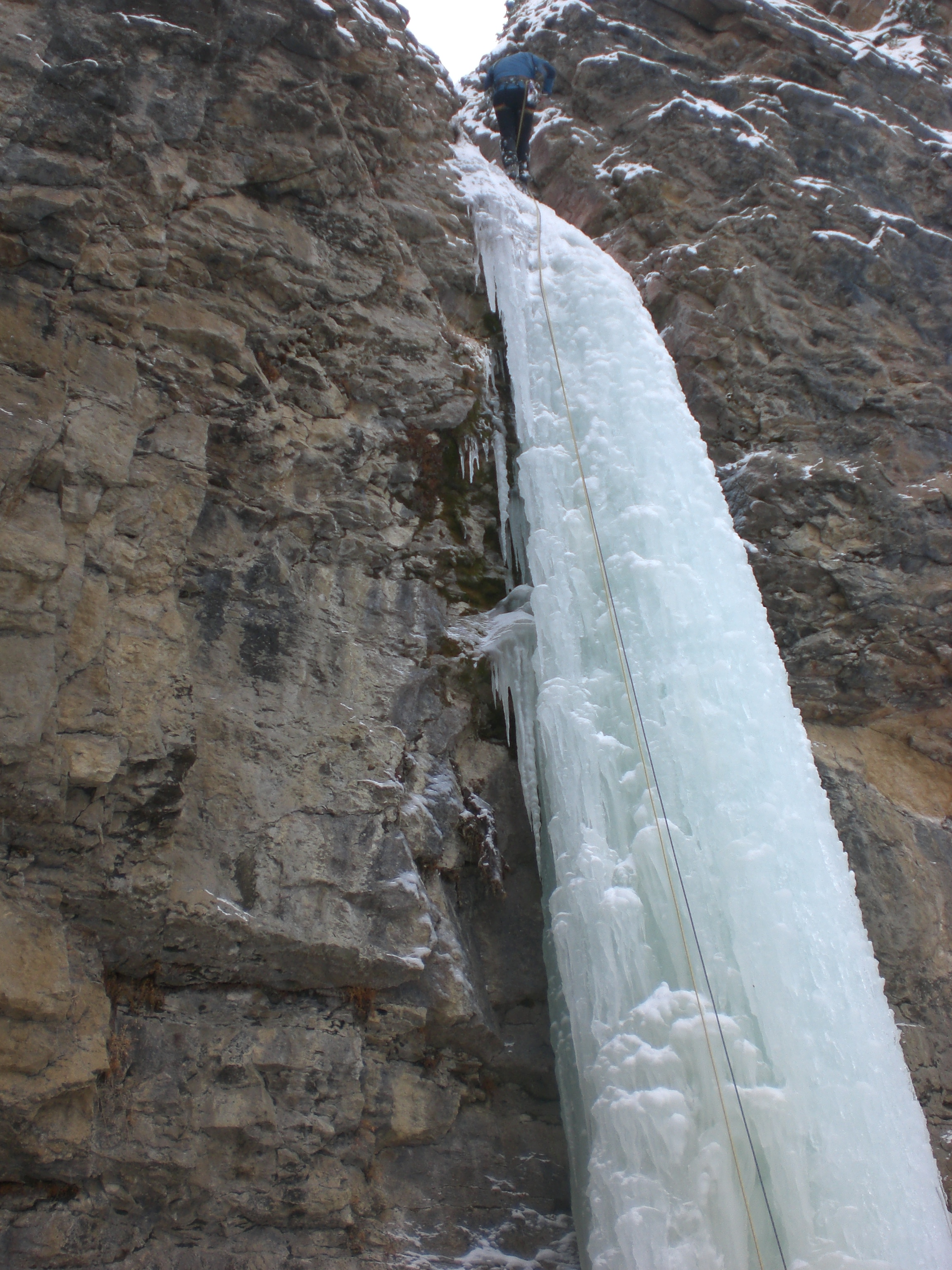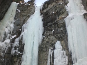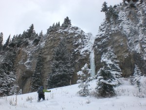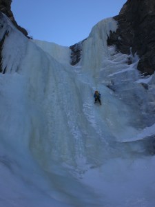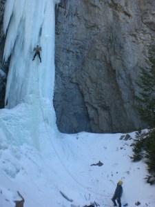 We got there at noon. Mike had called Jay at the Silvertip Mtn. Center and he’d told us he could see ice from his window. Sure enough, three climbs had formed on the cliff band overlooking the town. We got two in before dark.