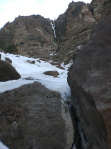 The next morning we set out to climb Hydromonster. Our luck hadn’t taken a complete 180, though. The approach beta is thin and no one had been up to the climb yet this season. We post-holed, side-hilled and flopped over blown down timber for a couple of hours. At a key juncture, we tossed a coin and headed into the wrong drainage. It was late by the time we regrouped on the road, and a dip in the Boiling River was sounding better than another run at the approach by then anyway. It’s not like we wouldn’t be back.