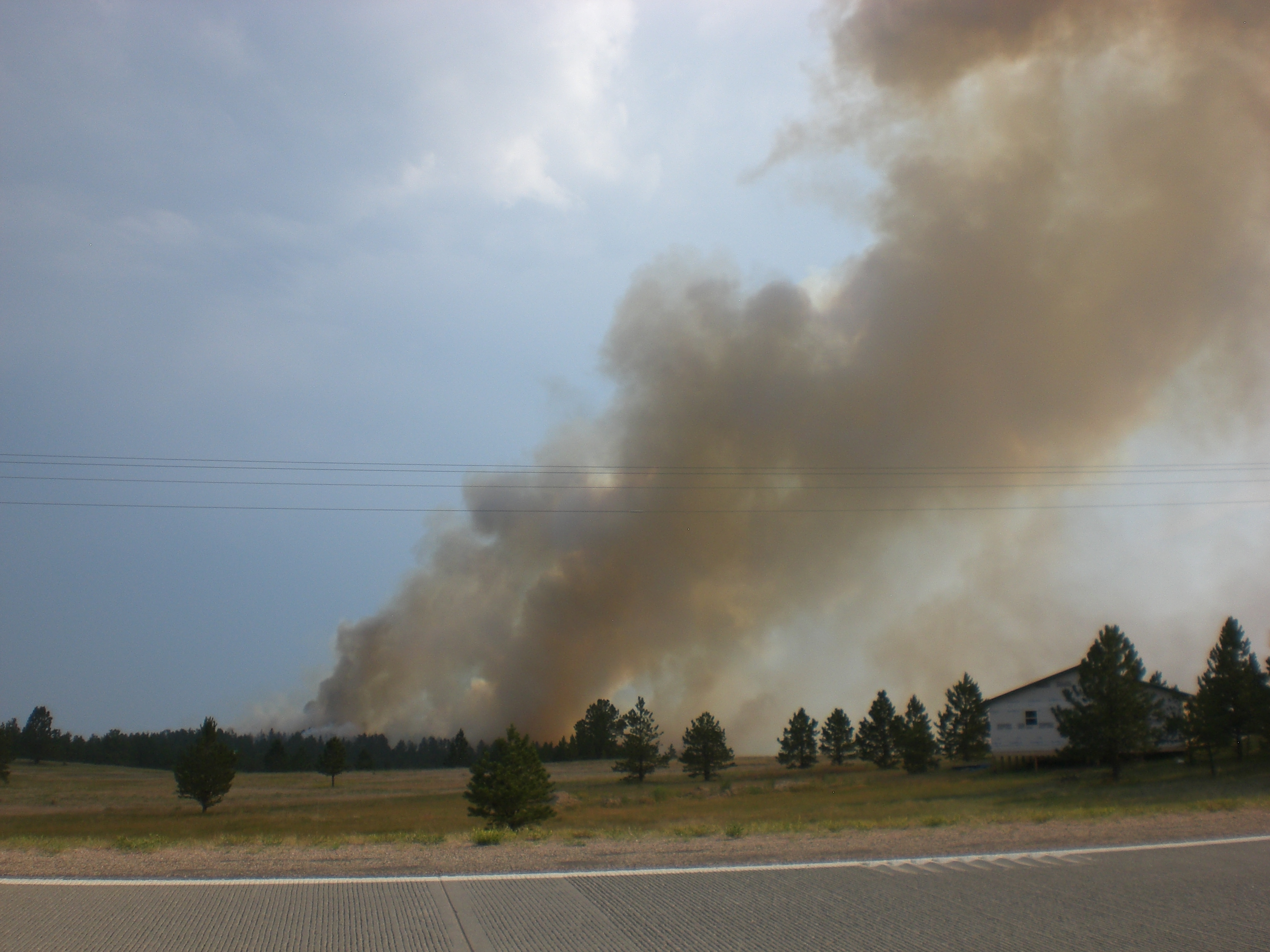 Weston County caught fire Sunday. On the way to the Needles, the air was clear and the land, peaceful. On the drive back, the trees were exploding and the sky was filled with buzzing aircraft and stinging smoke.
