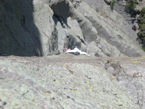 It’s a frustrating experience, but a person gets used to it. Progress is starting at a higher level and getting back to ‘go’ quicker each year. For me, that means starting on the 11’s at the Tower earlier and earlier. This year, I arrived back at my previous high point in July, and my first 11 lead of the season was Way Laid, the thin corner just left of McCarthy West Face.