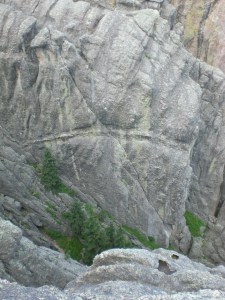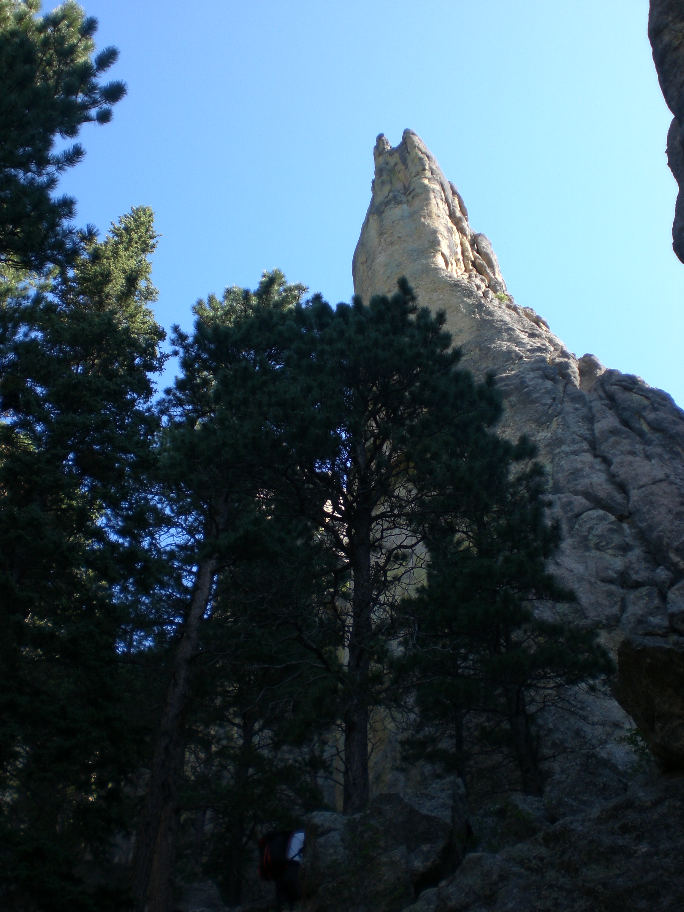 Looking up at the Cathedral Spires from the hairpin curves on the Needles Highway, one spire stands out. With its horns on top and sheer yellow sides,  Khayyam represents the Needles. It looks like a place for the bold and the elite only, but tucked away on the Northwest corner is a moderate gem: God’s Own Drunk.