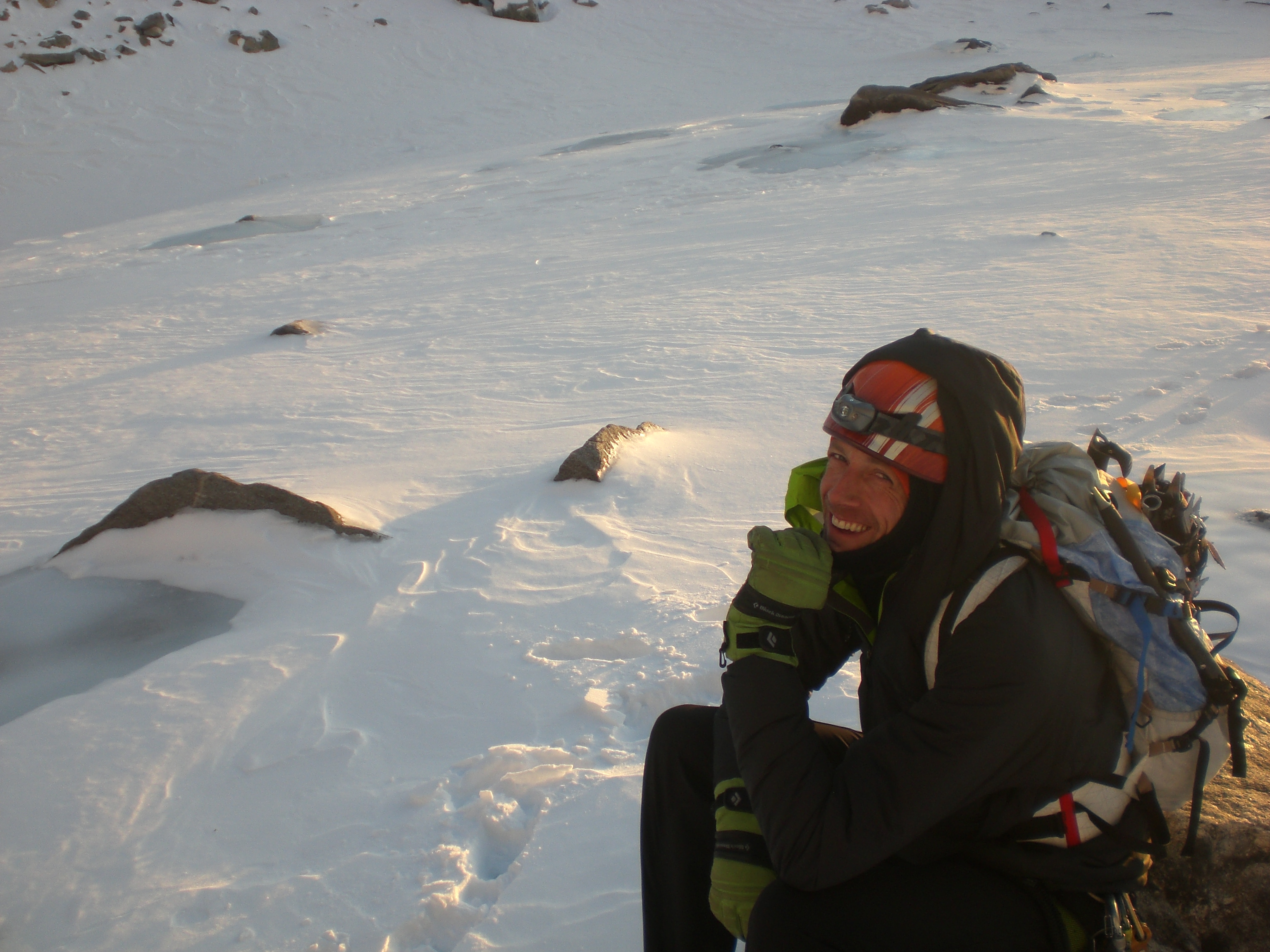 That attempt was my third on the route. We rappelled the three pitches below and descended avalanche debris to the floor of the cirque. As we coiled the ropes, a few tons of wet snow rumbled down a ledge system beside our abandoned line of ascent. We walked back to camp in silence, crawled into the tent and took our boots off.