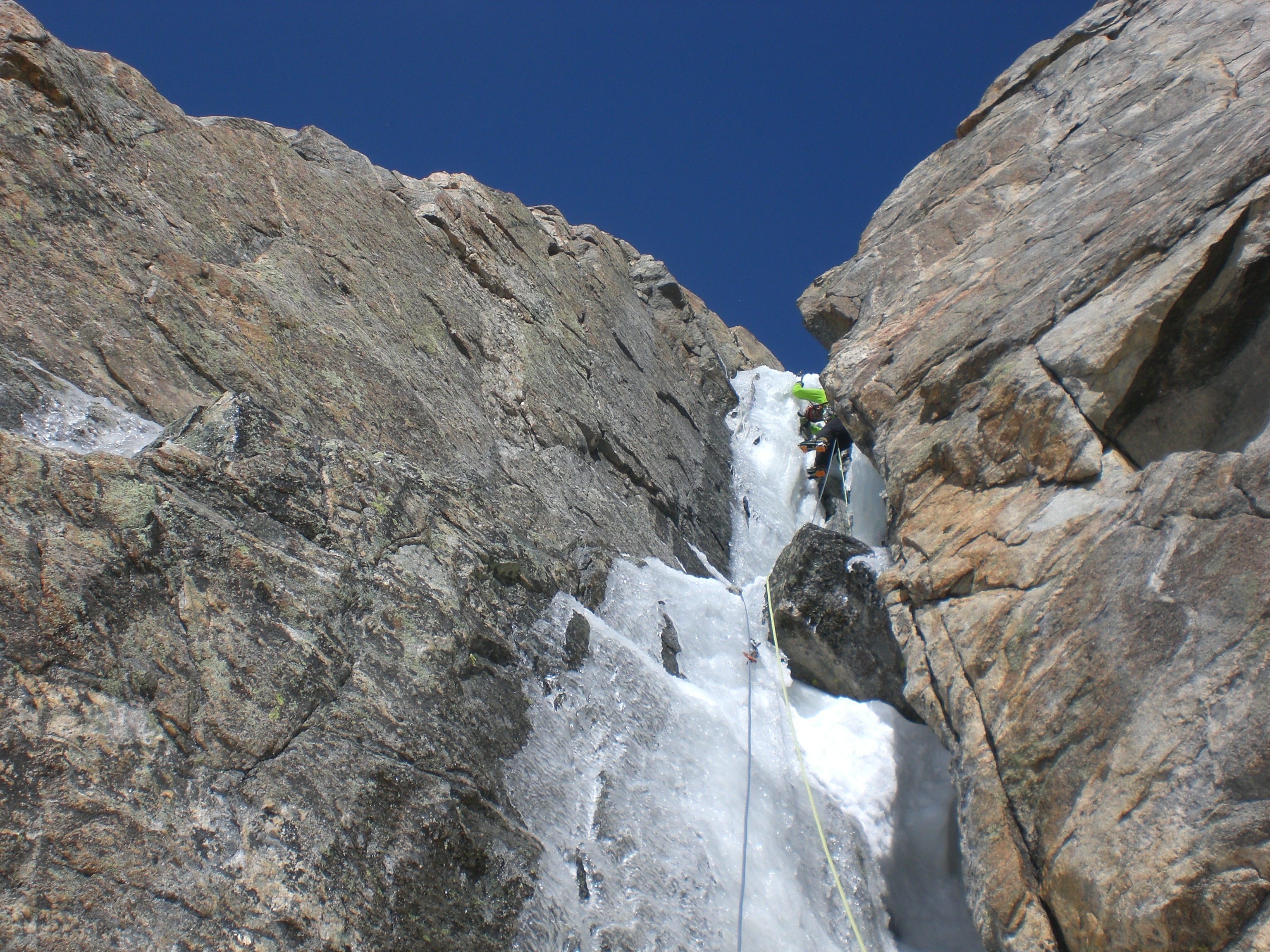 Of course, the problem was that I didn’t have it. If the helpful blob of ice for my left foot had been there instead of the mushy snow that was, I would have had it. If the sun had not already melted loose the key chunk of ice above my head, I would have had it. If there were a foot hold above the little bump of granite which supported one point of my right crampon, I would have had it.