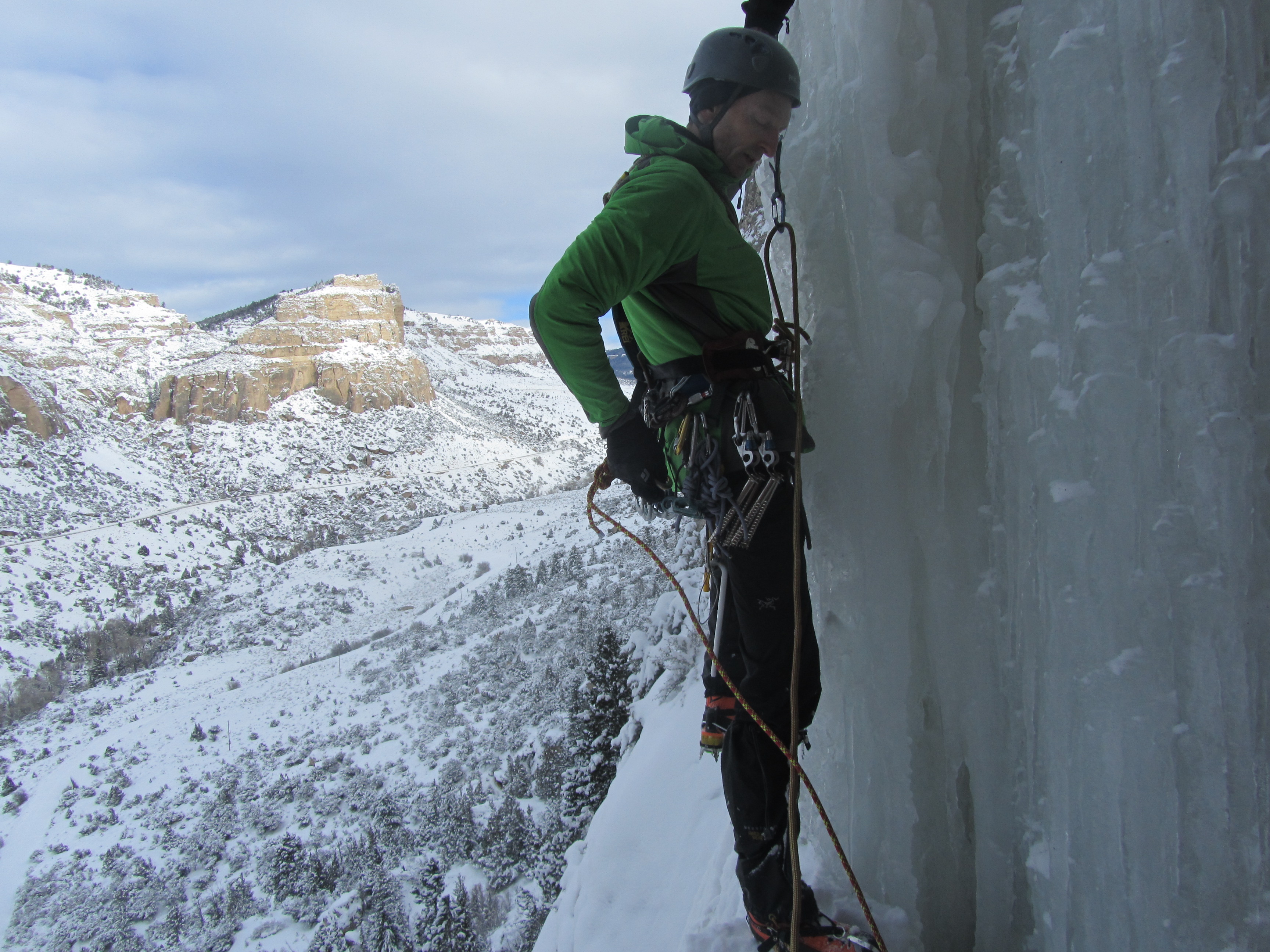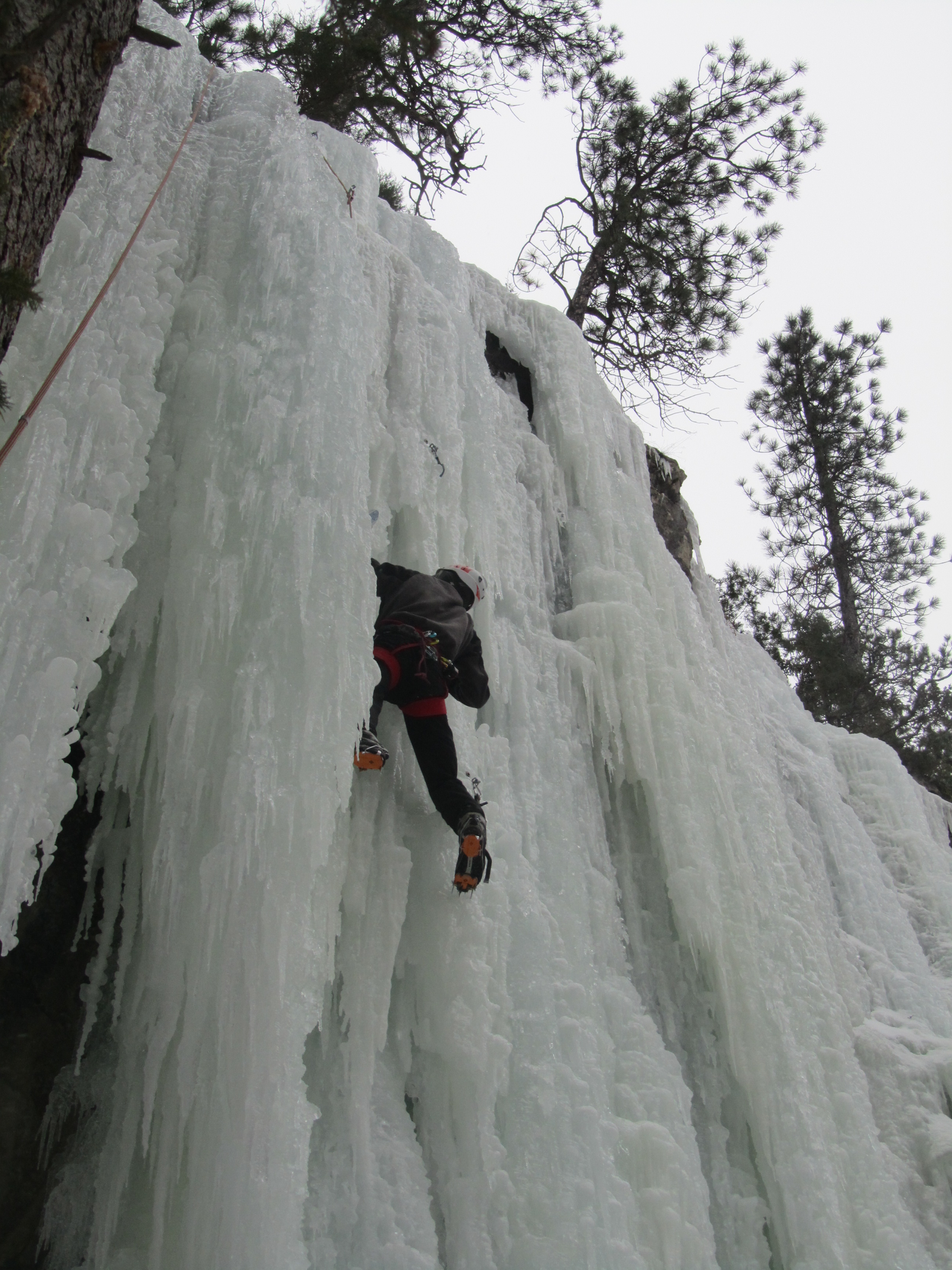 The column of ice I’d chosen was forty five feet tall, and beginning to deteriorate. It was a bit of a risk, and a little silly. It was so short, and it was wet and manufactured. I could hear cars on the road down in the canyon. I had followed a tourist’s Yak-trax prints up the trail to get here. I knew that I would find a PVC pipe leaking water over the cliff band at the top of the ice. There was no wild beauty or uniqueness to be found here. The pillar’s existence was all that recommended it.