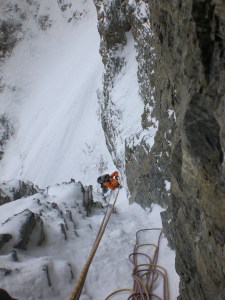 In October 2010, a small group of climbers got caught outside that envelope. They had made the classic gamble: go light and move fast. It’s a double or nothing kind of bet. With no light and no extra clothing, they ended up marooned by darkness on a large ledge system in the middle of the Southwest face. They did bring a cell phone, though. When they were clearly stuck and sleet began to pepper them, they called the Park Service for a rescue. Lacking any other recourse, the Park Service called two of us local climbers to help.